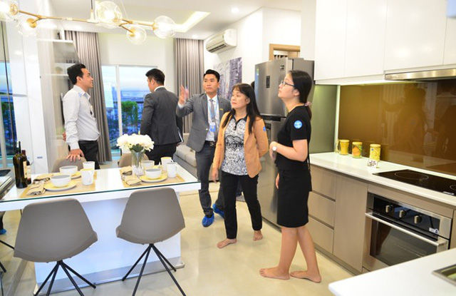 Khách hàng đang xem một căn hộ thuộc dòng Carillon và đặc biệt thích thú vì thiết kế hiện đại, tinh tế và hợp công năng.